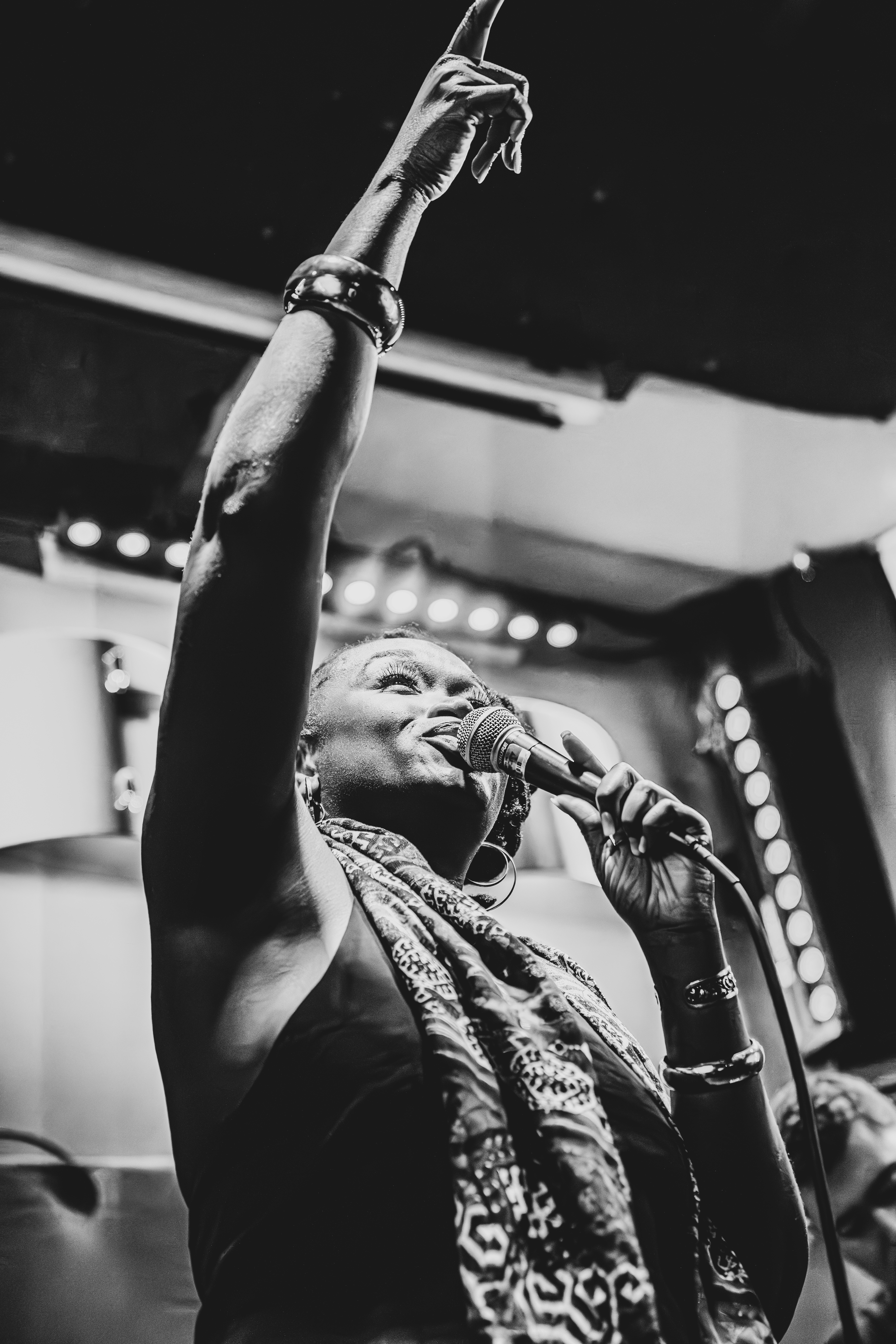 She makes rock and soul music that doesn't ask permission. Her live performances have stopped rooms mid-breath. Audiences have called for encores before the last note faded. People have cried without expecting to. Because IO doesn't just sing songs — she holds a room still and asks it to reckon with itself.